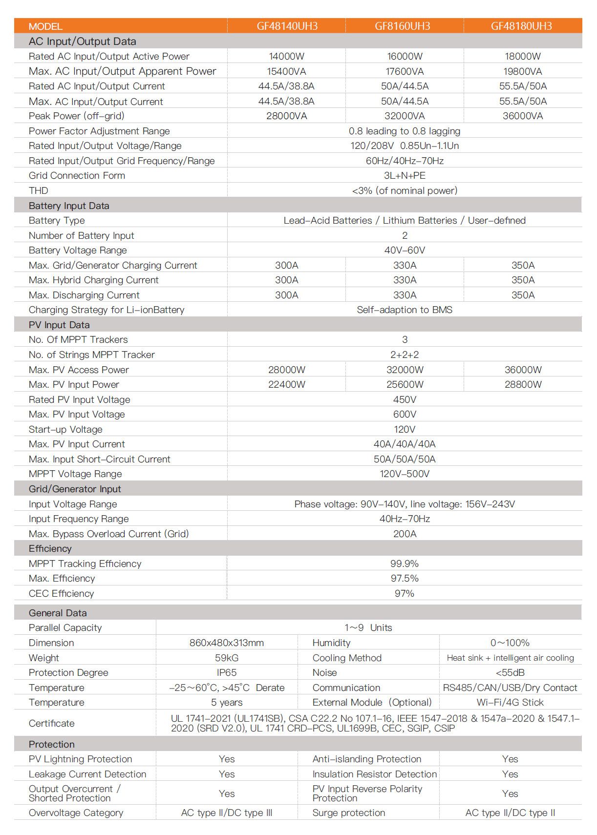 G-Force III | 18kW | 48V | Trifásico | 3 MPPT | Inversor Híbrido
