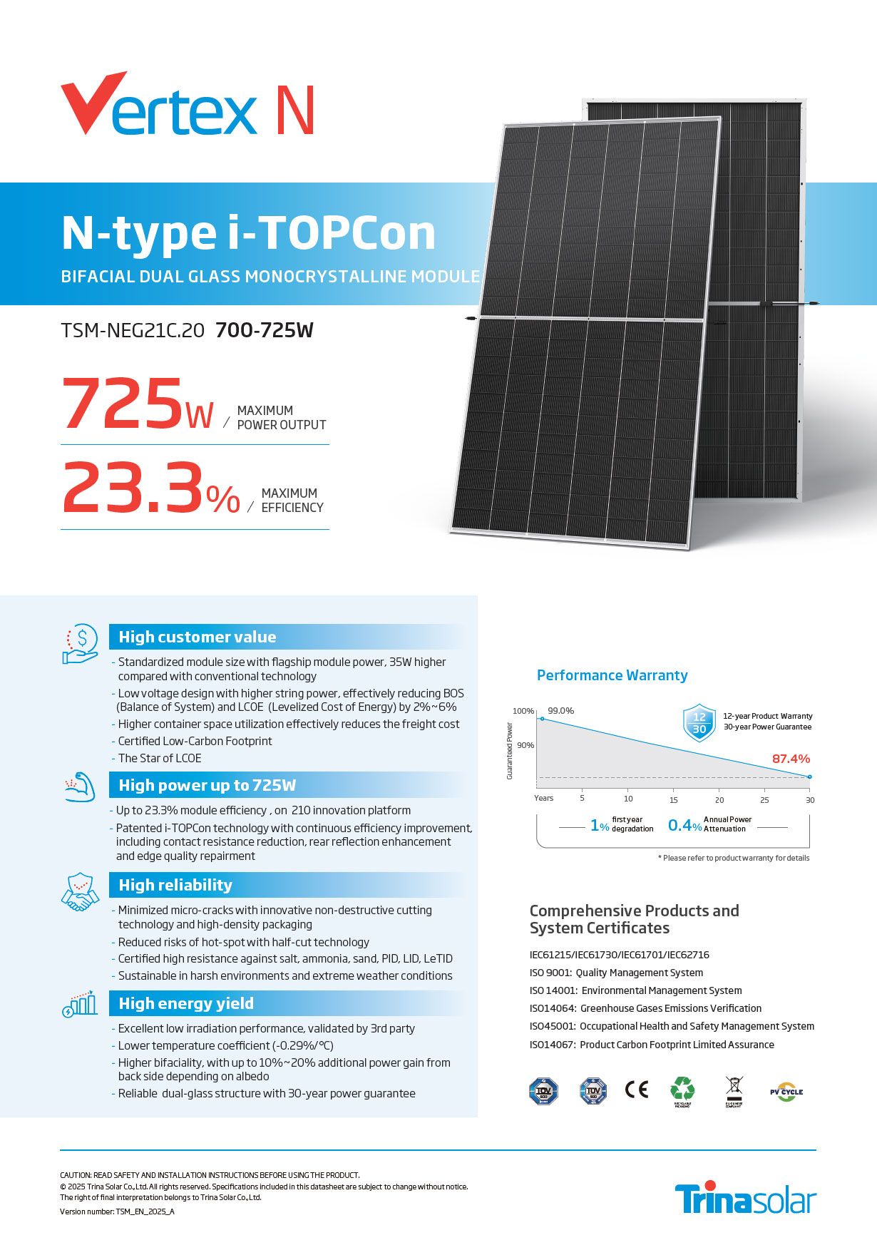 725W Bifacial | Trina-Solar Panel | 11 Pieces